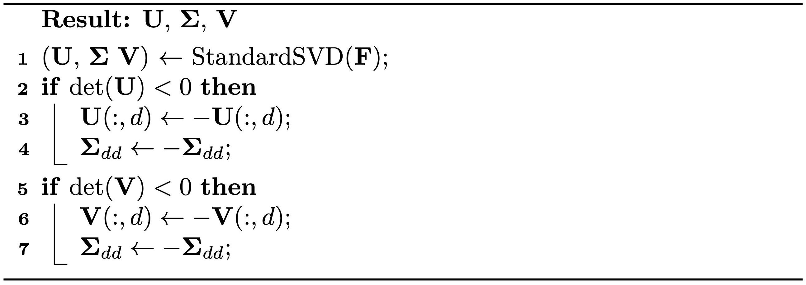 When discussing general slip boundary conditions, we introduced the usage of singular value decomposition (SVD). Here, we apply a variant known as Polar SVD (Algorithm 13.2.1) to decompose : where and are both rotation matrices, and is a diagonal matrix. Unlike standard SVD, which ensures remains non-negative possibly at the expense of having or , Polar SVD maintains and , allowing to be negative if necessary.