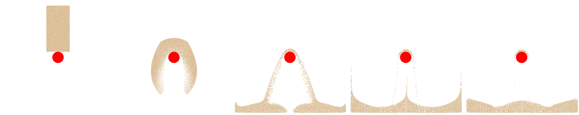We defined the material point data following Simulation Setup, extending it with two additional terms: the affine velocity field used in the APIC transfer scheme and the scalar log_J_diff used for volume correction as described in Drucker-Prager Elastoplasticity.