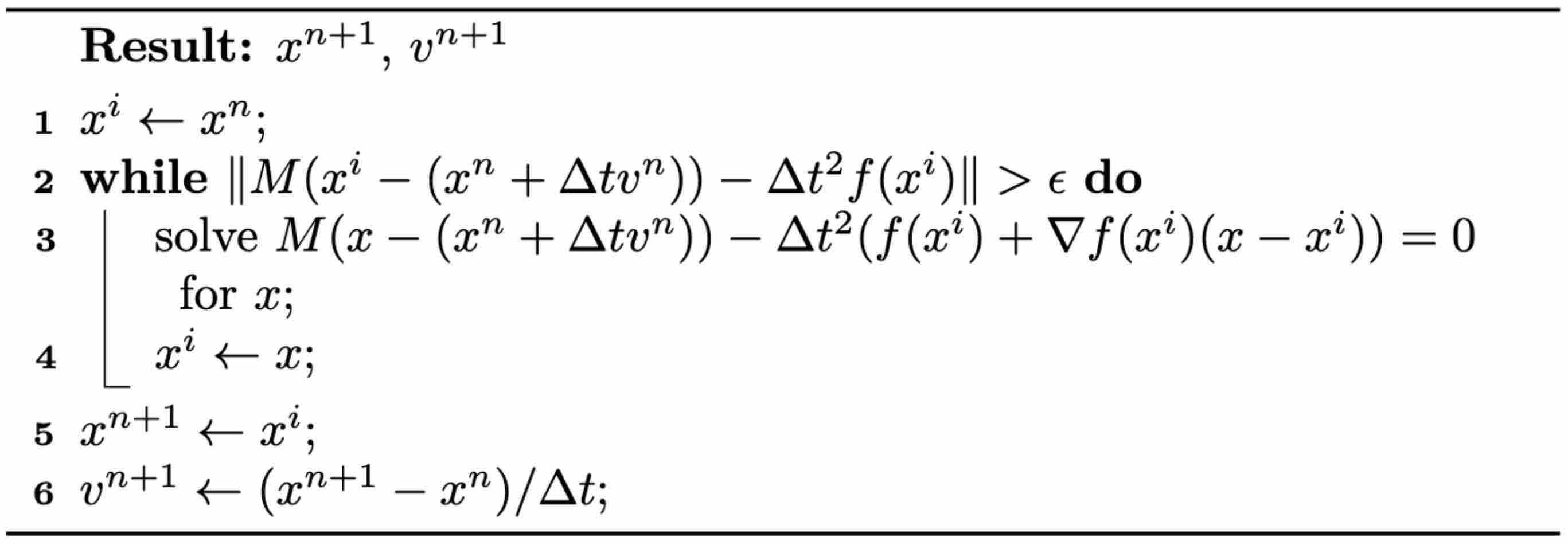 M(xn+1−(xn+Δtvn))−Δt2f(xn+1)=0.(1.5.2)