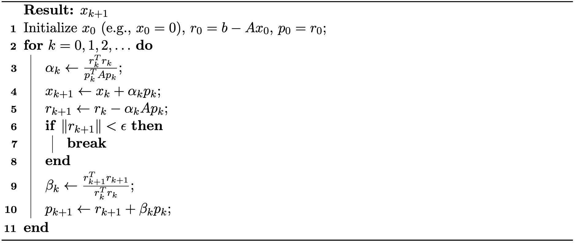 Final Algorithm. The simplified CG algorithm is summarized in Algorithm 37.3.1: